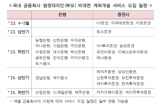다만 금융위원회는 도입 일정은 금융회사에 자율적으로 맡긴 만큼 서비스 도입 예정일과 상이할 수 있습니다.