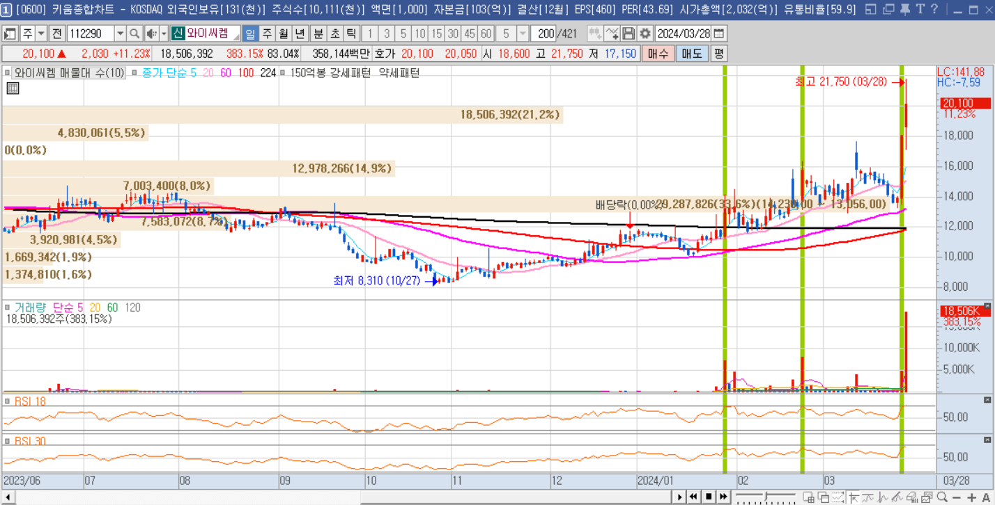 와이씨켐(+11.23 / 18506K)